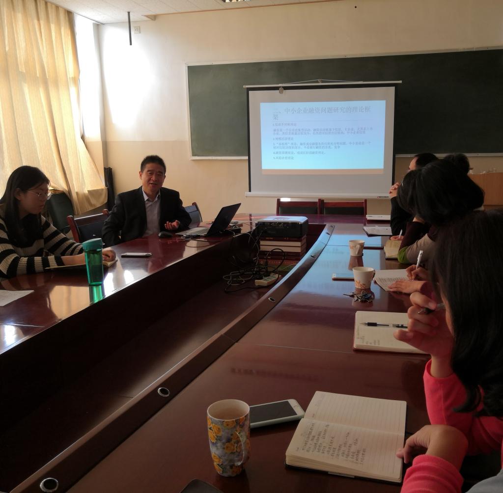 2018年11月2日,我院第3期双周学术报告会如期举行,董彦岭院长做了“中小企业融资问题研究”的学术报告,研究院全体教师和2017级硕士研究生参加。